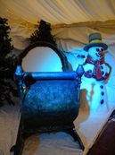 Set consists of snow cloth, LED star cloth, trees, Fence, lights and snow covering effect.